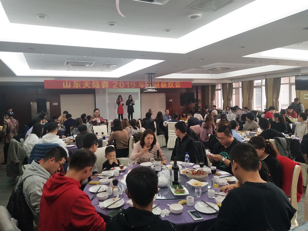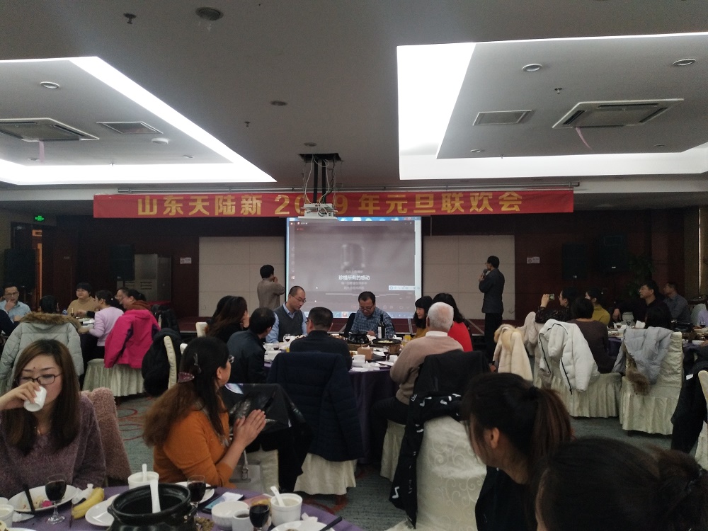 新年的鐘聲即將敲響,時光的車輪又留下了一道深深的印痕。2018年12月22日,山東天陸新公司在煙臺海悅大廈酒店舉辦了2019年元旦聯歡會,我們相約在這里,享受緣分帶給我們的歡樂,享受這段美好時光,一起用心來感受真情,用愛來融化冰雪。唱歌、相聲、發紅包……,大家踴躍登臺表演,敞開你的心扉,釋放你的激情,這里是歡樂的海洋。我們將團結一心,齊心協力,為我們公司的發展繼續努力!
