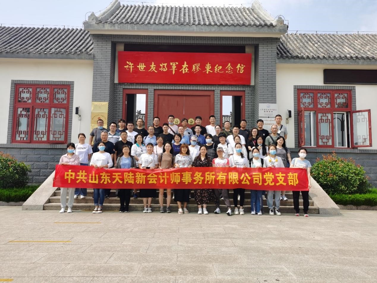 為慶祝中國共產黨建黨100周年,大力弘揚以愛國主義為核心的抗戰精神和紅色文化,培育民族精神和社會主義核心價值觀,2021年6月26日,山東天陸新會計師事務所黨支部組織全體黨員及職工開展“致敬百年 牢記使命”主題黨日活動。